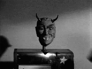 Andy taps his thumbnail to have red texts blow up in his silhouette of a face.
